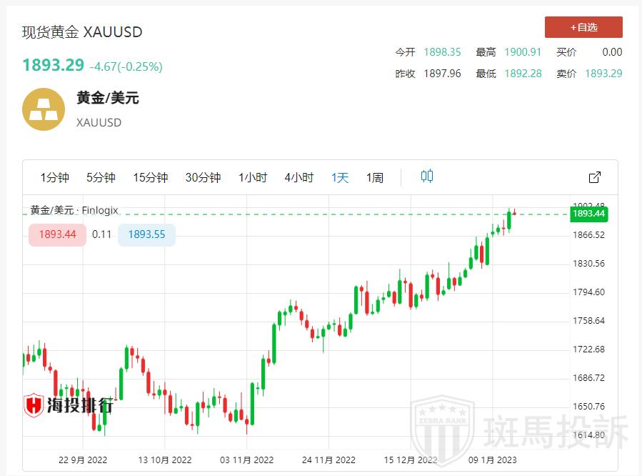 美国劳工部发布12月CPI数据,整体与核心通胀均如期走低,现货黄金受到极大提振,时隔7个月一度高触1901.55美元水平,全日录得升幅1.14%,且高收盘于1896.70美元水平处。
