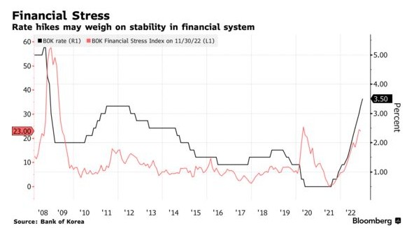 随着放松新冠限制规则的提振逐渐消退,以及加息的影响渗透到经济中,消费疲软正在支持这一观点。去年,韩国央行史无前例地两次加息0.5个基点,试图跟上美联储快速收紧政策的步伐,并遏制韩元贬值。