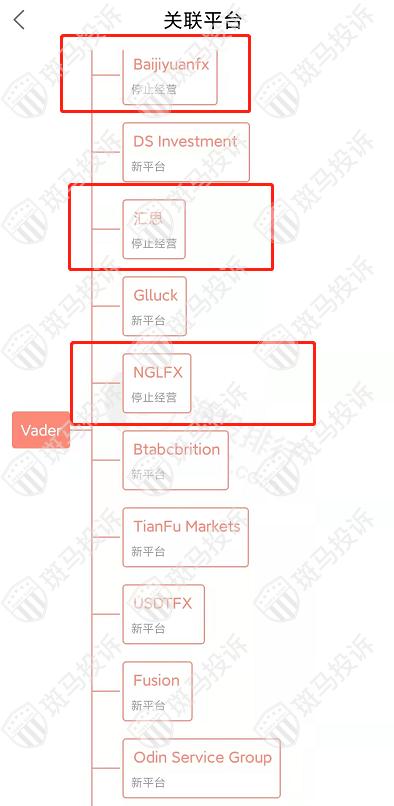 主白标关系显示,Vader平台和已经停止经营的NGLFX、汇思、Baijiyuanfx等平台相关联,从他们的服务器地址,网站的模板来看,都可以看出来相似的地方。