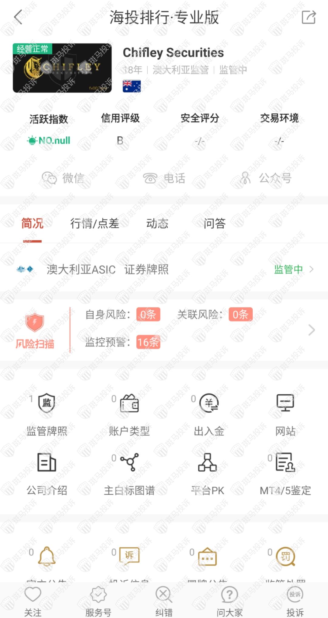 这家平台叫Chifley Securities,成立于2004年,全球无排名,目前有澳大利亚ASIC监管,有外汇牌照,能做外汇保证金交易,风险扫描显示16条风险,投资者资金安全有保障。