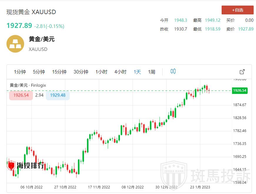本周公布的美国经济数据不佳,美联储官员鹰派发言也加剧了对经济衰退的担忧,受美元走弱和避险需求等因素提振,当周,国际金价再度上涨,纽约商品交易所黄金期货市场交投最活跃的2月黄金期价上涨0.24%,收于每盎司1927.7美元/盎司。而截至1月20日,本月以来国际金价更是涨超5%,近100美元/盎司。