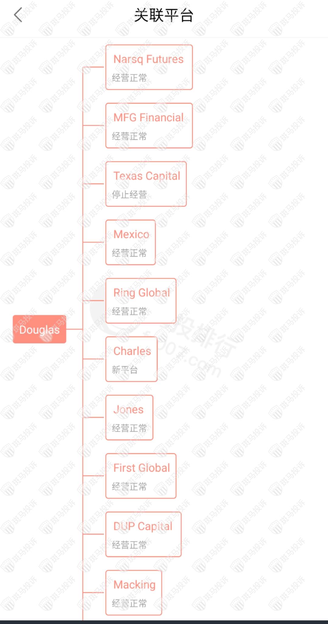主白标关系显示,Douglas平台和国内已经停止经营的平台Texas Capital平台是一家公司,从他们的服务器地址,网站的模板来看,都可以看出来相似的地方。