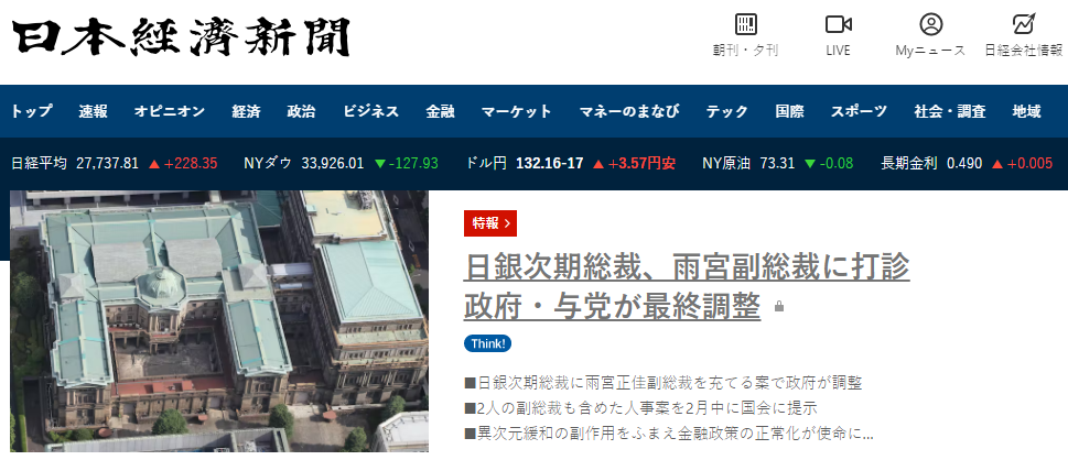 日本媒体日经新闻周一早间援引政府消息人士的话称,日本政府正在接触日本央行副行长雨宫正佳(Masayoshi Amamiya),希望他能接替黑田东彦出任日本央行行长。