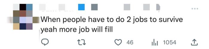 还有人讽刺道,“当人们必须做2份工作才能生存时,是的,就有了更多的就业岗位。”