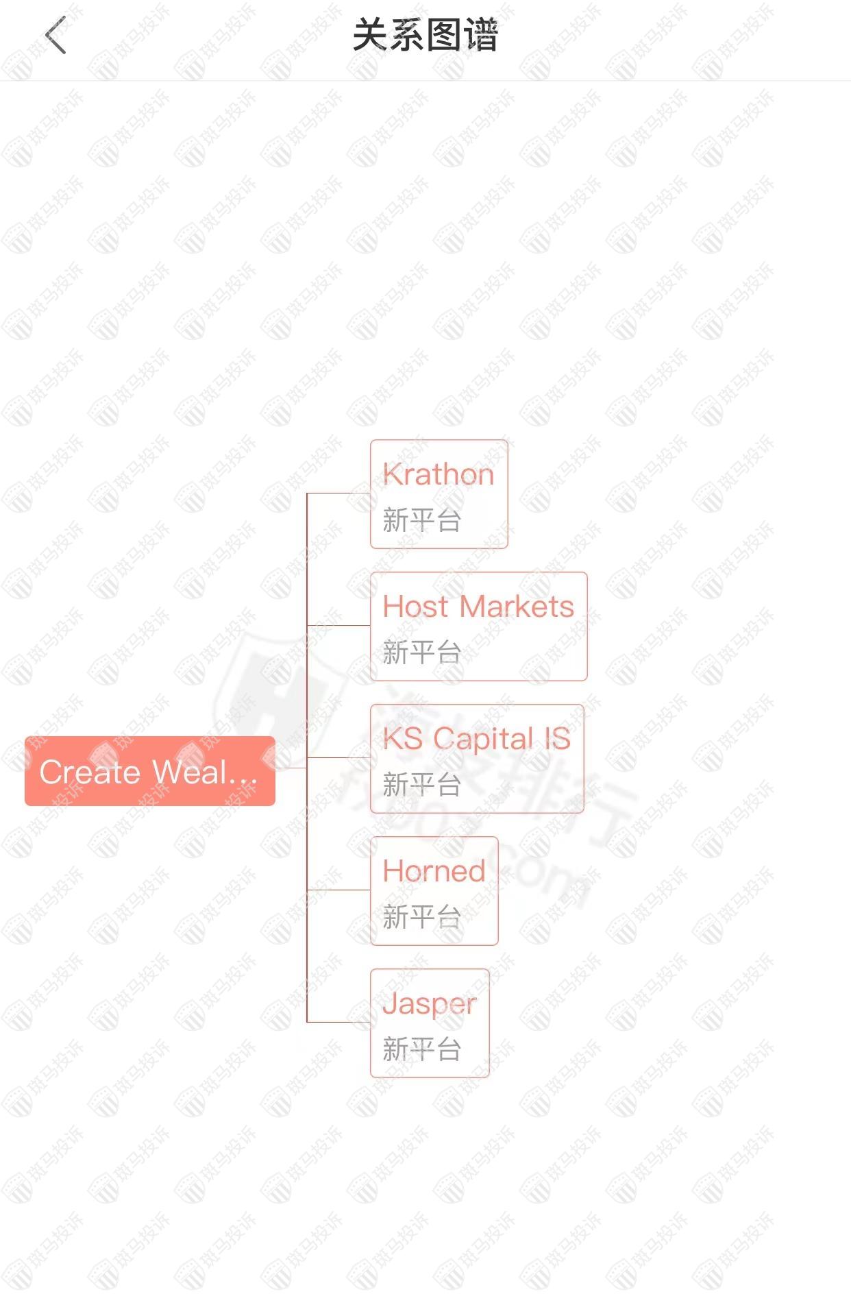主白标关系显示,Create Wealth Global平台和5家平台存在关联。