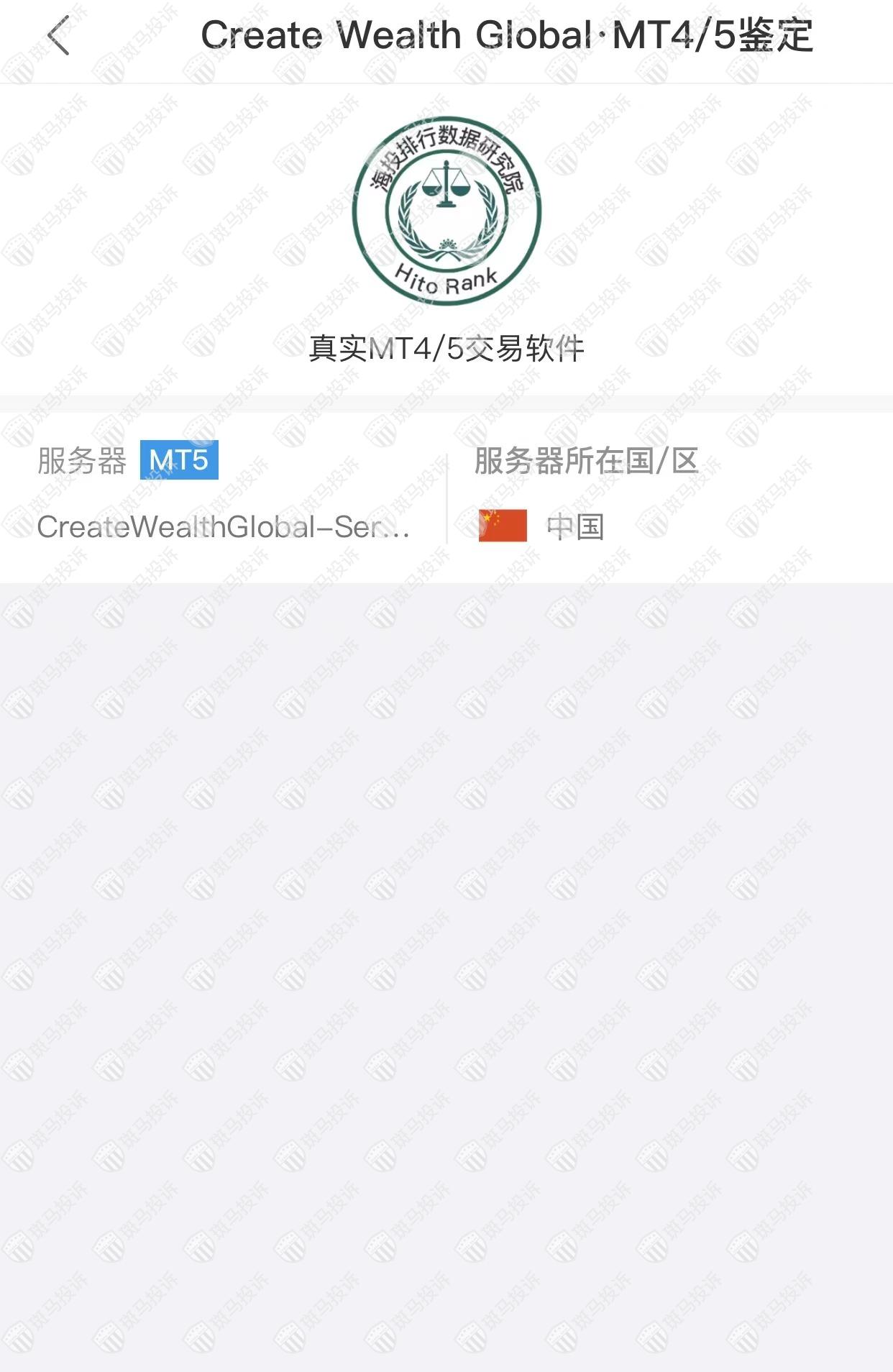 Create Wealth Global平台服务器有1台,在中国。