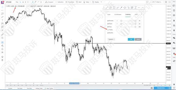 幸运的是,TradingView允许你调整所有绘图工具的可见性,以便仅在你选择的时间框架内可见。