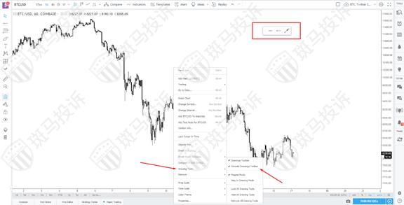 TradingView允许你将所有喜欢的绘图工具放在一个工具栏上,以便于访问。