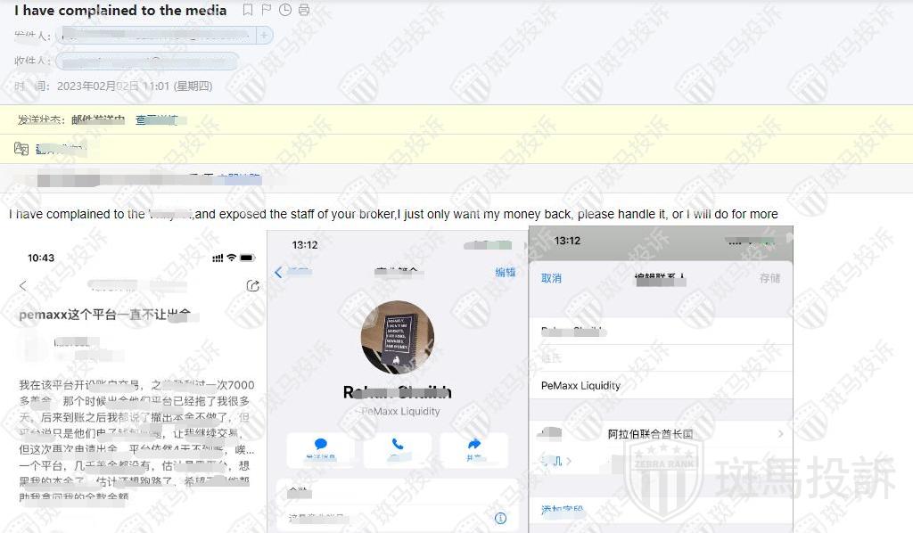 斑马投诉已将该投诉反馈给Pemaxx平台,目前未收到回复。
