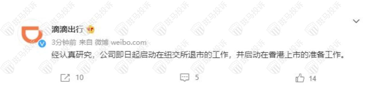 最新股市信息:滴滴出行经认真研究,公司即日起启动在纽交所退市的工作,并启动在香港上市的准备工作。