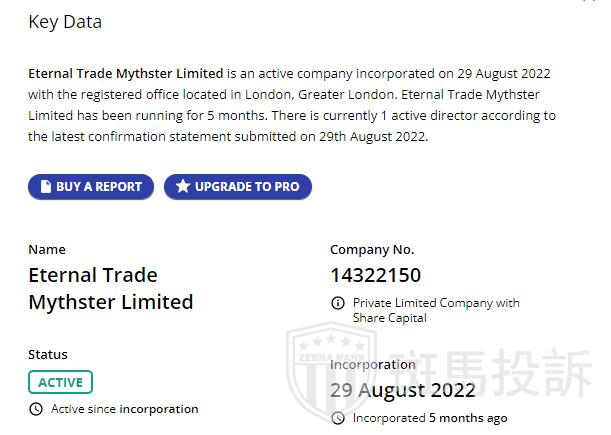 在收到用户的相关爆料之后,小编也自行查验了一番。确实是一家刚成立不久的小平台,网上相关资料甚少,只查询到ETM于2022于2022年8月29日注册成立,注册办事处位于英国伦敦,Eternal Trade Mythster已经运行5个月。根据最新确认声明,目前有1名活跃董事。1名活跃董事?估计一个公司也就三四个人在做吧!