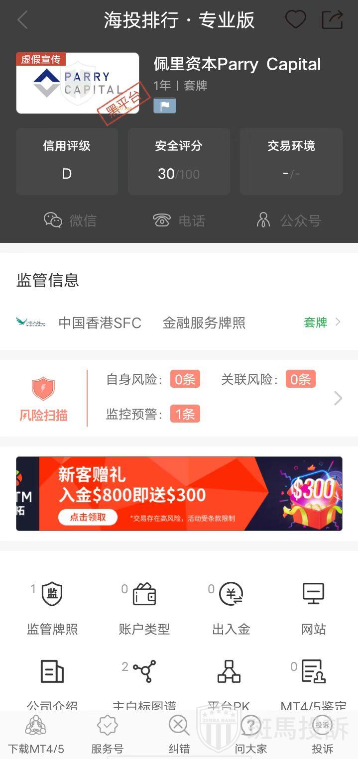 Parry Capital佩里资本平台目前在斑马投诉未收到相关投诉。
