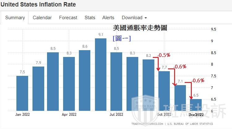 本周二(14日HKT21:30)美国将公布反映通胀率的1月年度CPI,市场预测是+6.2%,12月是+6.5%。去年9月美元汇价(美元指数DXY约115水平)从高位开始下跌,原因是9月后CPI连续3个月有「显著」的下降,显示通胀明显地下降,所说的「显著下降」,意思是年度通胀每月至少有0.5%下降幅度,因而才能驱使联储局放慢加息步伐。可参考下方[图ㄧ]美国通胀率走势图,从9月打后,通胀率每月以至少有0.5%的下跌幅度,这促使了市场相信美国通胀开始见顶回落,美元汇价亦因此从9月开始逐步下跌,美元指数DXY从9月的114.78ㄧ直下跌至1月31日,最低跌至100.82。由此可见,美元自9月底开始持续下跌,是因为美国通胀连续几个月显著地下跌,令联储局「放鸽」。但今次将公布的1月年度CPI,预测是6.3%,距离12月的6.5%只是下跌0.3%,只属于「轻微下降」。