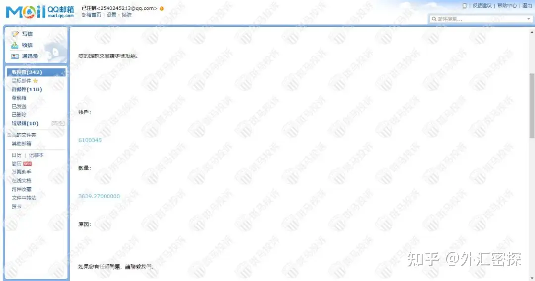 2022年4月,有用户反馈,在股票群内认识了一些老师,推荐在平台VSFX投资,先后投入24000美金本钱,结果亏损到只剩3639.27美金。亏了认赔想离开,联系客服却被无理由拒绝出金,VSFX平台还把我账号注销了,现在什么都看不到。要求VSFX平台出掉我剩余的本金。