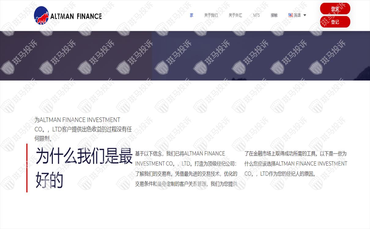 ALTMAN FINANCE 外汇平台怎么样?ALTMAN FINANCE 外汇平台监管怎么样?安全吗?相信很多炒外汇的内行人都知道ALTMAN FINANCE ,不过对于新手交易员来说,或许对于ALTMAN FINANCE 外汇平台还比较陌生。本文就为咱们简略介绍一下ALTMAN FINANCE 外汇平台,以及ALTMAN FINANCE 平台是否正规的相关问题,感兴趣的投资者可以了解一下,希望对大家有所帮助。