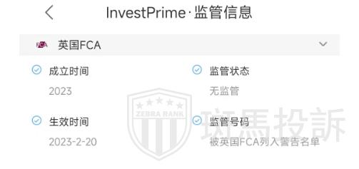 InvestPrime平台被英国FCA列入警告名单,涉嫌虚假宣传,FCA/PRA不监管这家公司,金融监察员服务将无法解决与该公司的纠纷,如果您与未经授权的公司打交道,一旦出现问题,您将获得较少的保护,也将面临投资无法追回的损失,建议投资者投资这家平台要谨慎。