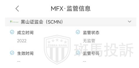MFX是MFX Prime Doo的品牌和商业名称,在黑山成立,注册号为51072896,不过据我们在黑山证监会(SCMN)官网上查询并无信息,也就是说MFX平台并没有有效的金融监管,投资风险极大,用户投资需谨慎!