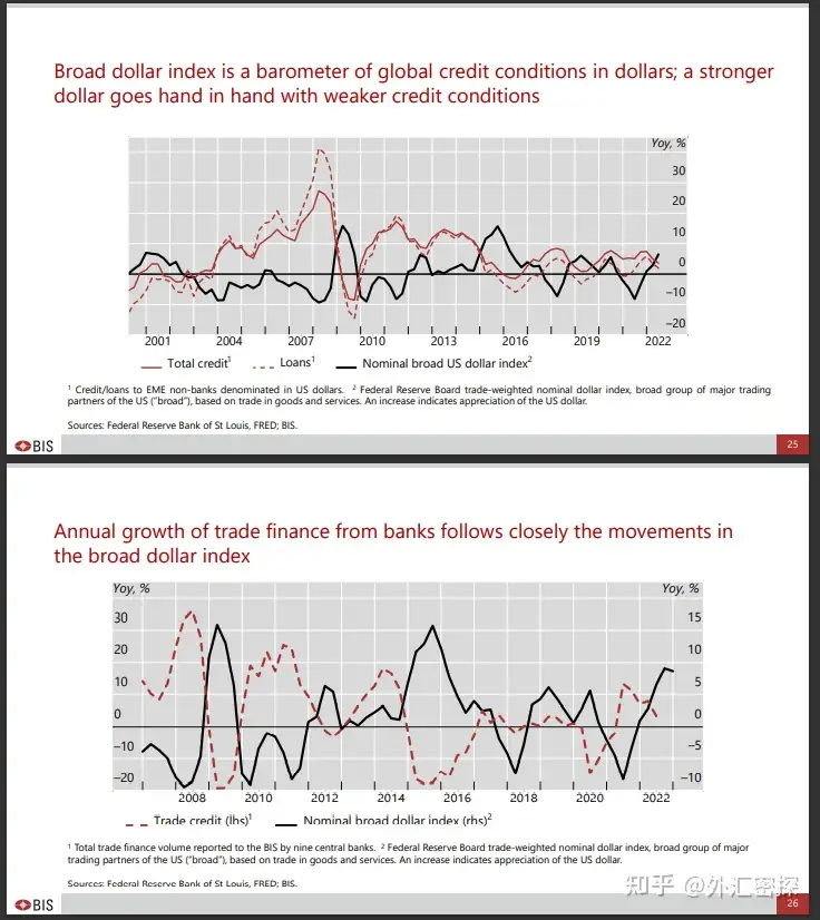 关键点4:Shin认为这是因为当前贸易活动的金融属性增强了,而作为全球主导的贸易货币和融资货币,美元走强通常以为这更加糟糕的金融与信贷环境(联储加息收紧金融状况),融资成本的上升和规模的下降都可能遏制商品贸易。