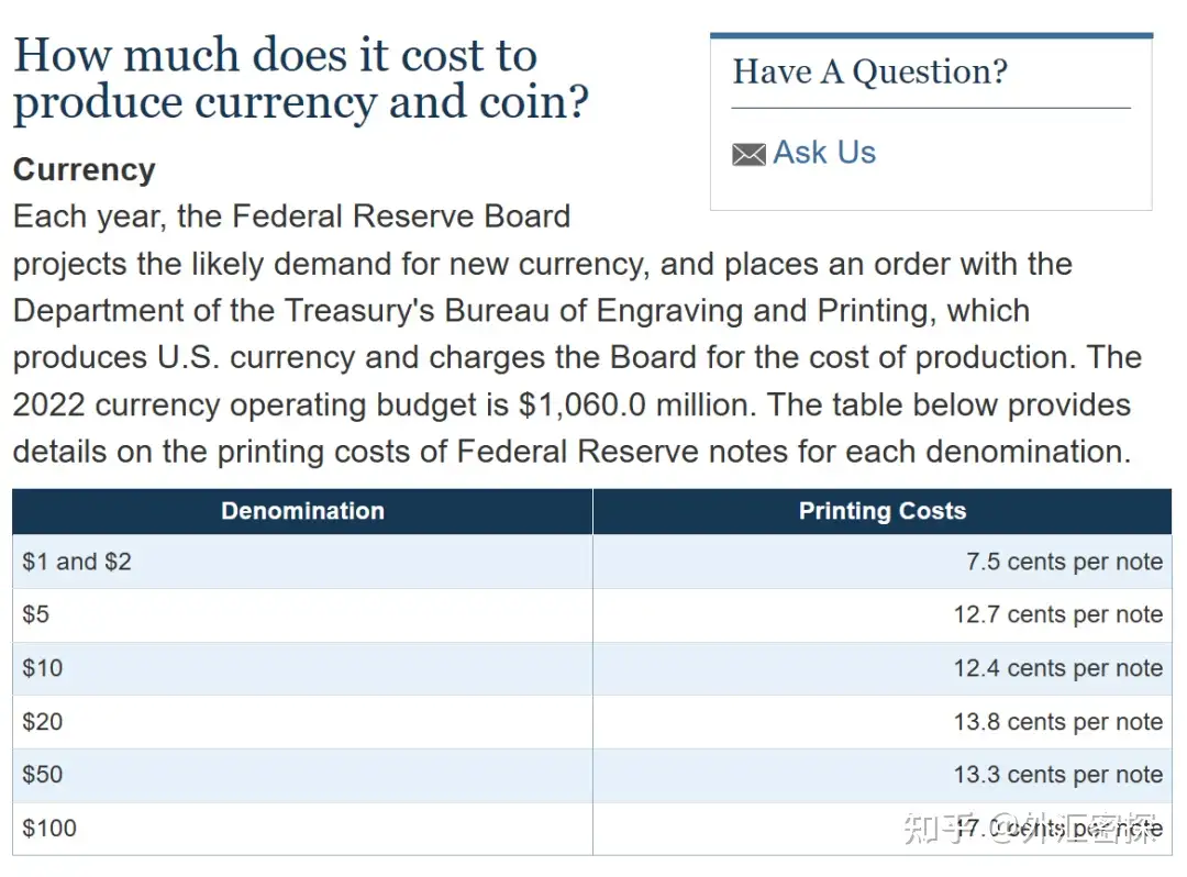 最近有个视频在调侃100美元纸币的制作成本低至17美分却能作为主导货币买到全球的商品。作为一个无聊的研究者,我一查联储官网还确实是17美分。