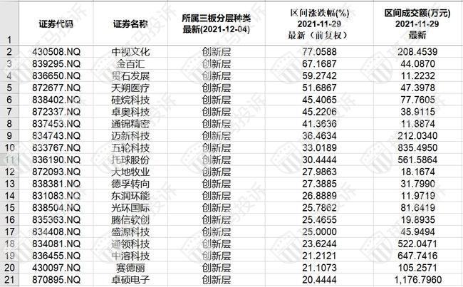 新三板创新层成交额排名前20