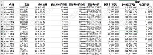 北交所和新三板估值排行榜