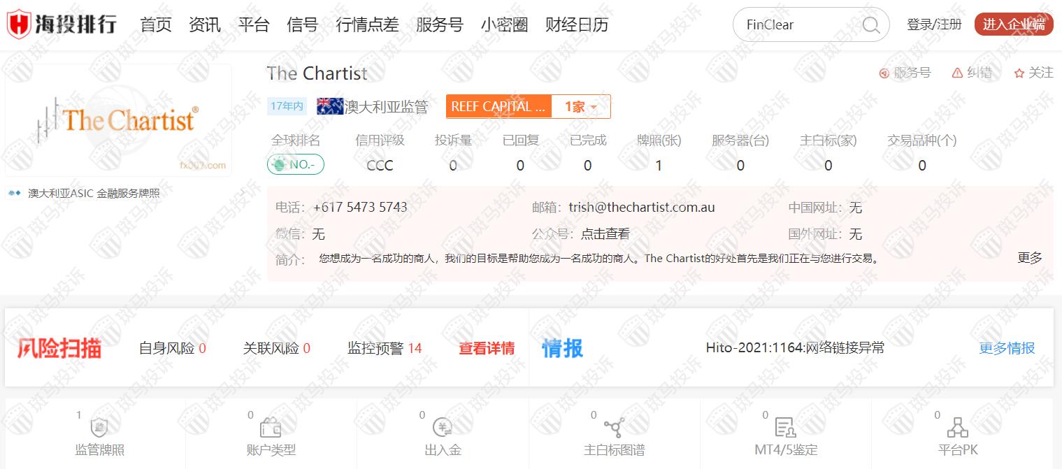 The Chartist成立于2005年,目前受澳大利亚ASIC监管,风险扫描显示14条风险,投资者投资需谨慎。