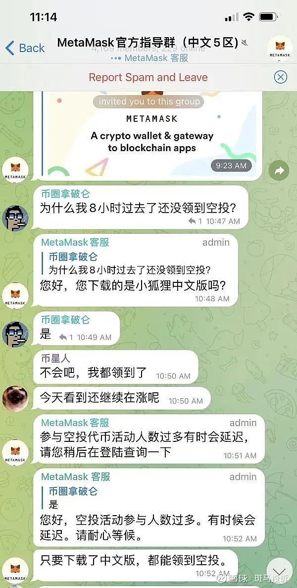 近日,晓薇加入了一个名为“MetaMask官方指导群(中文5区)”的电报群,说是下载注册该钱包后的12小时内可以免费领到20000MetaMask代币。晓薇本想注册来着,上官网一查,MetaMask根本就没有电报群。
