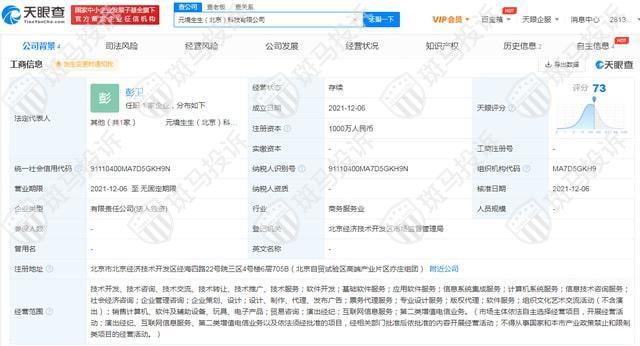 据元宇宙最新消息报道,元境生生(北京)科技有限公司于近日成立,注册资本1000万元人民币,该公司由杭州阿里创业投资有限公司全资持股。