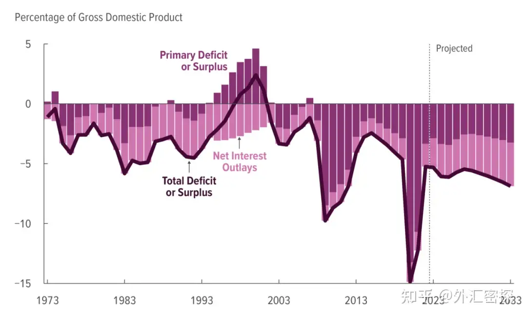 图:去年美国财政赤字缩减到了接近疫情前的水平。