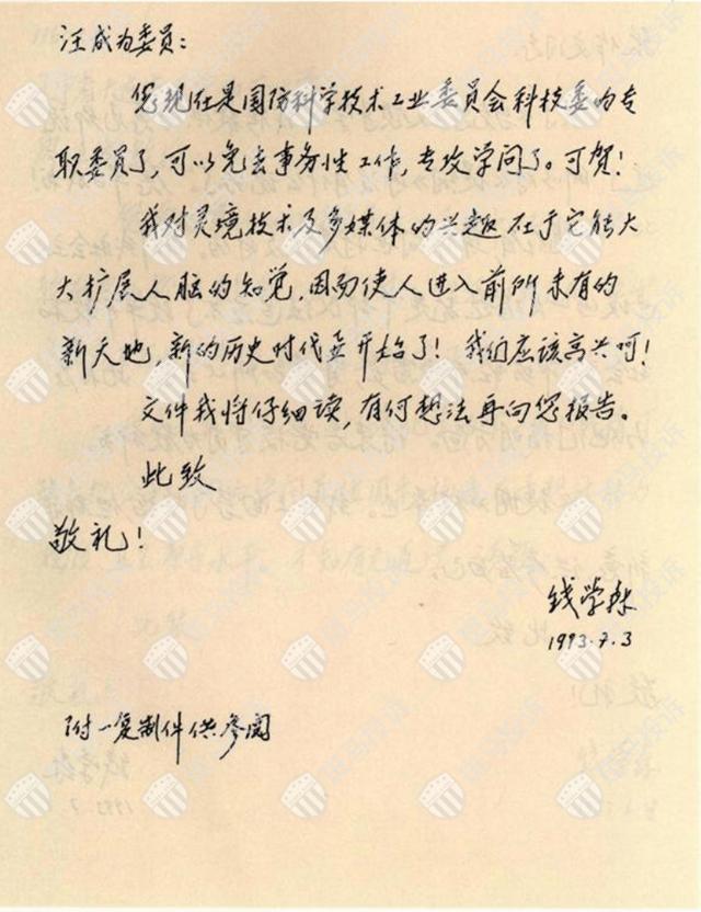 此外,在1993年7月3日的信中,钱学森还认为,“灵境”技术及多媒体能大大拓展人脑的知觉,使人进入前所未有的新天地。