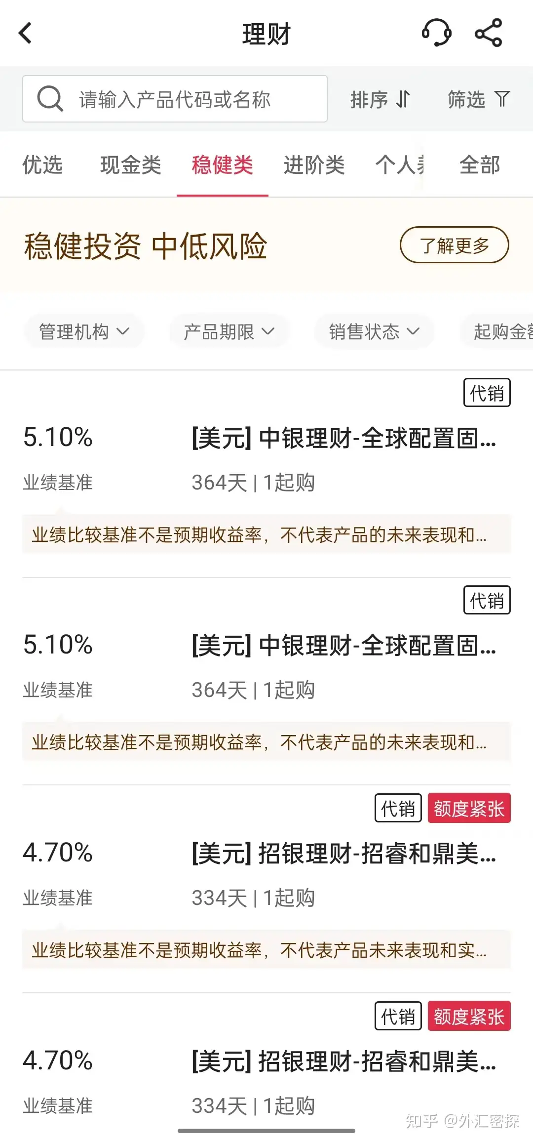 半年过去了,现在这个套利方案,才逐渐走入寻常百姓家,被银行开放对外理财。可见好的稳赚的策略,一开始并不会每个人都知道,且不会流入市场,只有当少数人赚到足够收益的时候,这个策略才会慢慢传播到市场上被大众获知。(下图是中国银行提供的美元理财,年化收益已经到5%,大大超过国内理财以及贷款利息,妥妥的无风险套利,PS:并不适合所有人,这里仅做参考!)