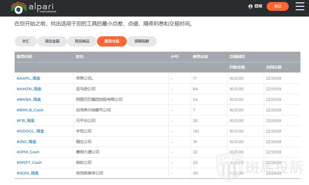 Alpari International提供的每种工具的交易详情列于以下合约细则中: