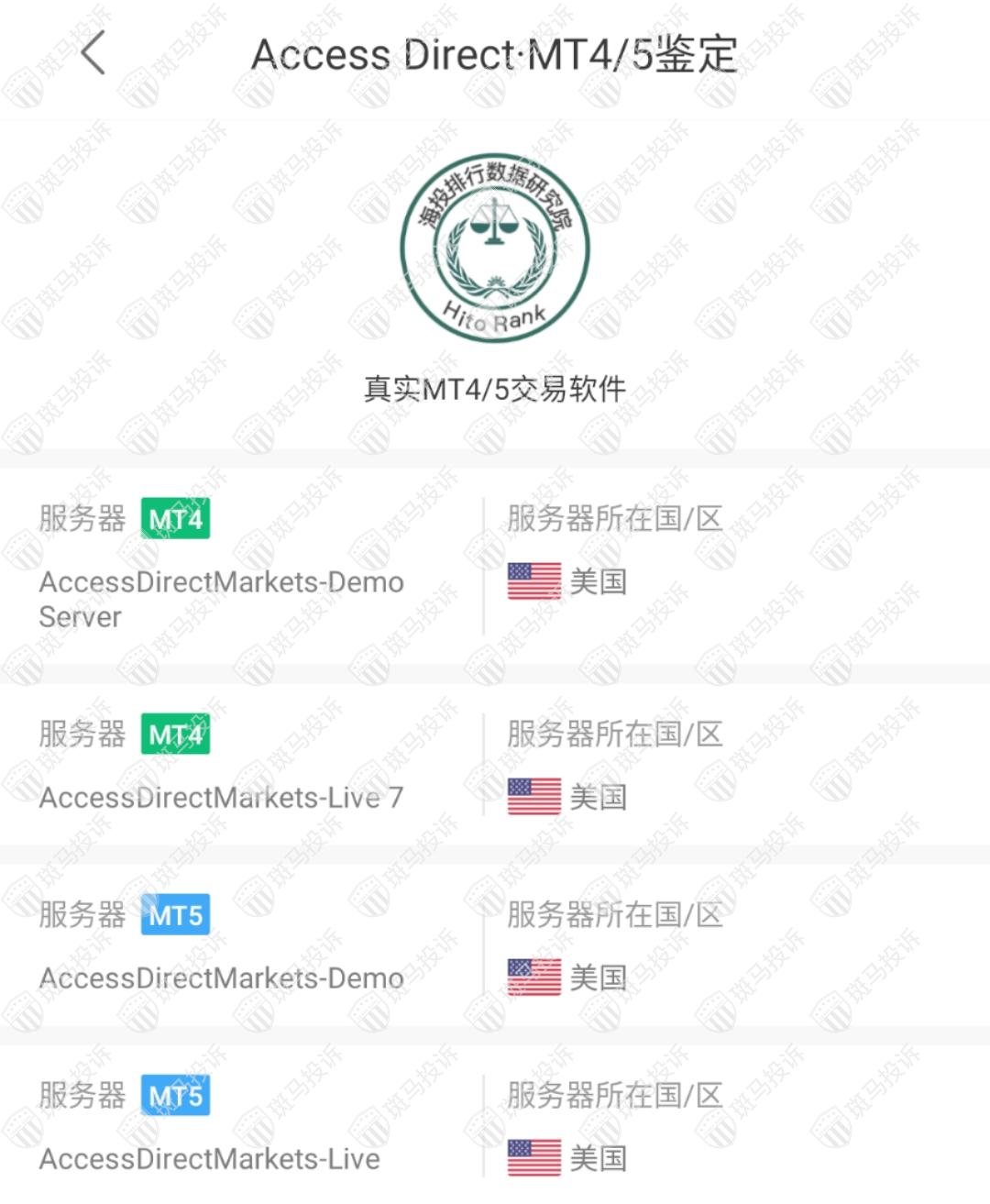 Access Direct平台服务器有4台,均在美国。