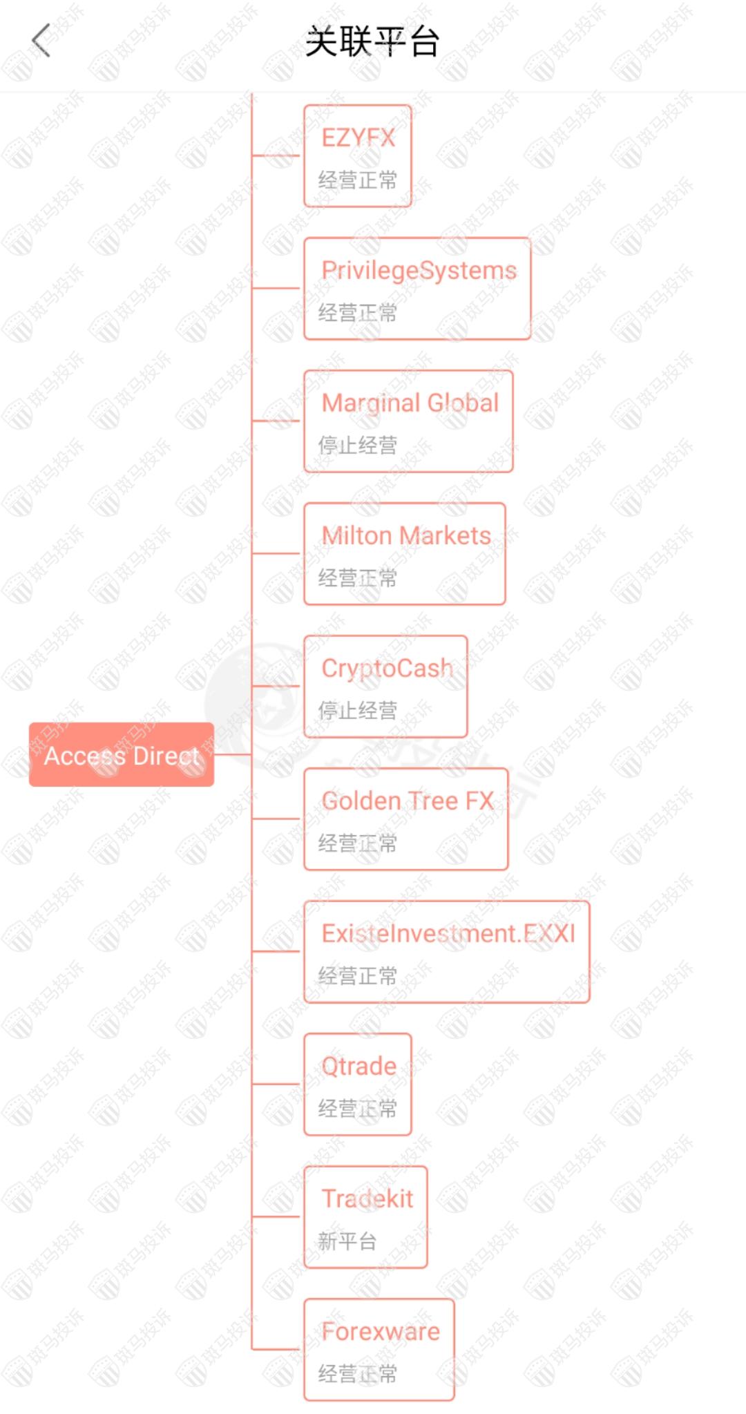很明显,Access Direct平台的最终结果和CryptoCash是一样的。CryptoCash平台在2017年成立,暴雷后在2020年成立了Access Direct平台,并且还是使用没有外汇资质的金融牌照,用一样的没有备案的域名和一样的网站模板继续在国内收割韭菜。