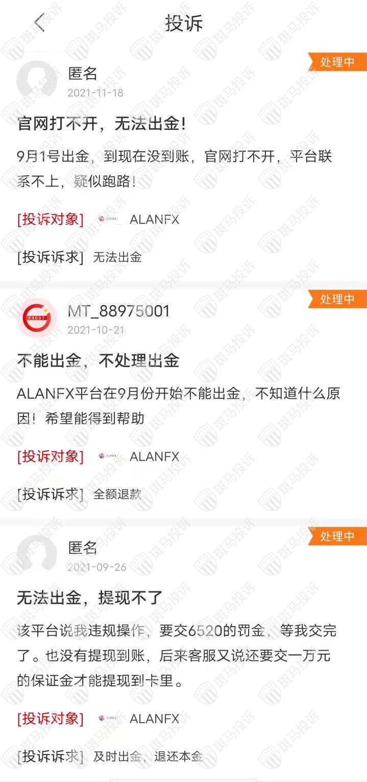 Ecntradefx克比亚国际的关联平台ALANFX目前在斑马投诉已收到10条投诉,且都仍在处理中。