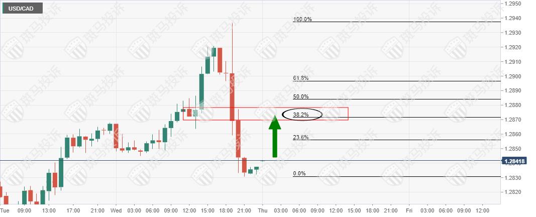 与此同时,小时图显示继美联储决议后美元/加元出现下跌后,目前出现盘整。