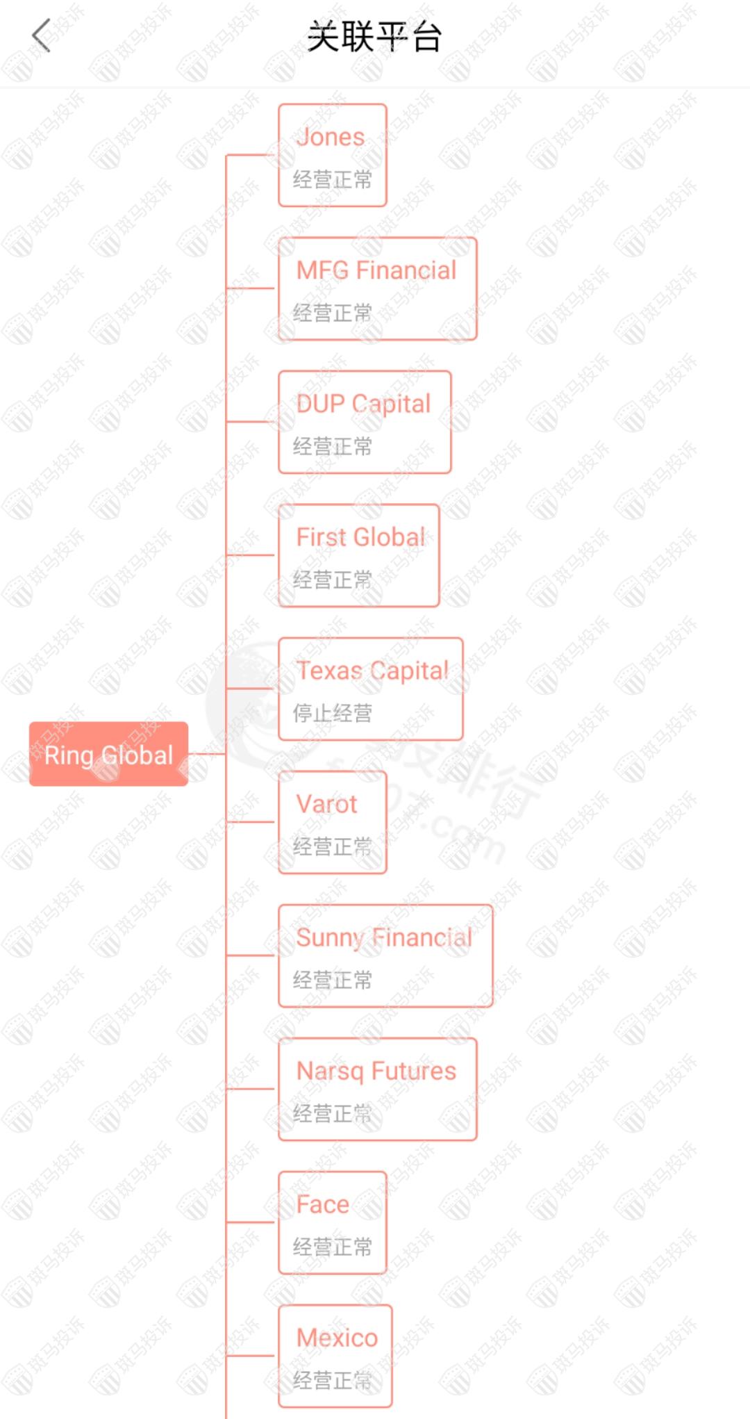 很明显,Ring Global平台的最终结果和Texas Capital是一样的。Texas Capital平台在2021年3月成立,暴雷后在2021年4月成立了Ring Global平台,并且还是使用没有外汇资质的金融牌照,用一样的没有备案的域名和一样的网站模板继续在国内收割韭菜。