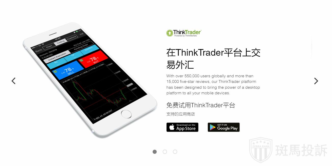 2.功能强大的移动交易平台:超过55万的交易员下载量,ThinkTrader交易平台提供了良好的交易体验,横跨桌面,平板电脑和移动手机。