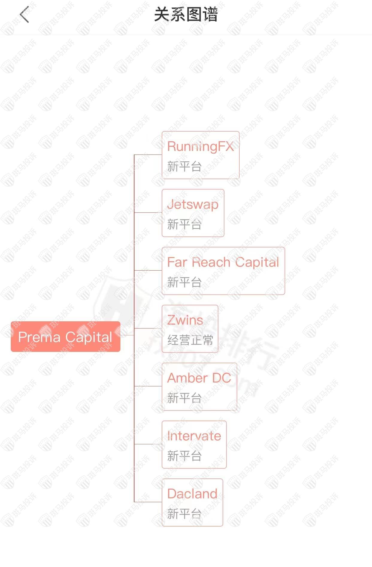 主白标关系显示,Prema Capital平台和7家平台存在关联。