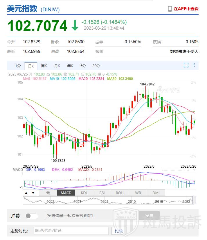 美元指数(102.7077,-0.1523,-0.15%)