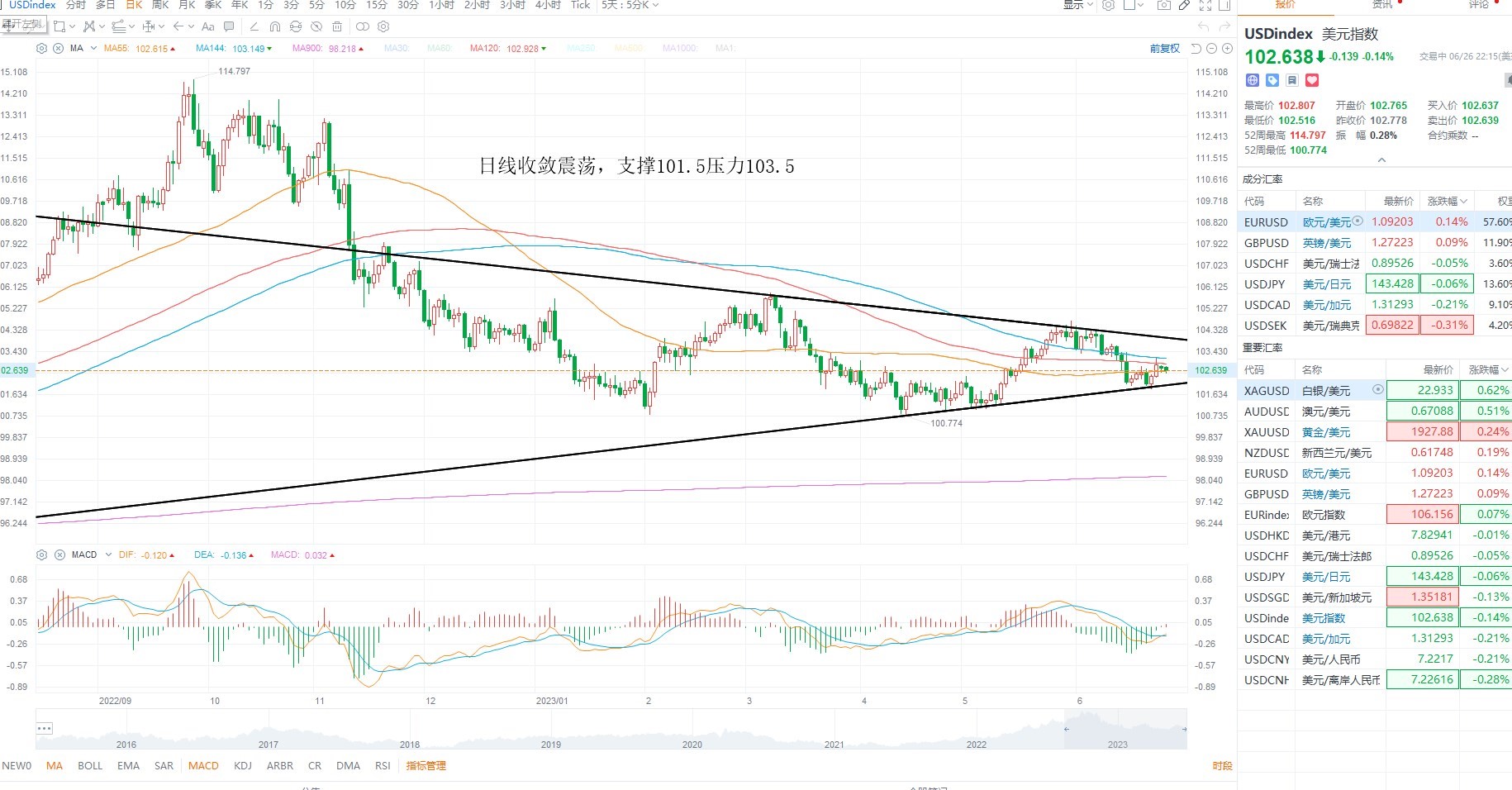 美元指数小幅反弹,但依然在收敛区间之内,没有方向选择,由于地缘局势的不确定性,短期施压美元,且美联储没有进一步的表态对于加息的态度,日内美元维持收敛对待即可,等待突破,金价方面短期震荡下行,虽然出现了超跌反弹,但是结构上并未突破区间压力,且均线下移,谨防避险情绪过去之后的空头宣泄,美原油方面短期依然是区间震荡,且日内偏空,若始终无法站上区间压力,则不排除破位前期低点的可能性,日内等待方向选择