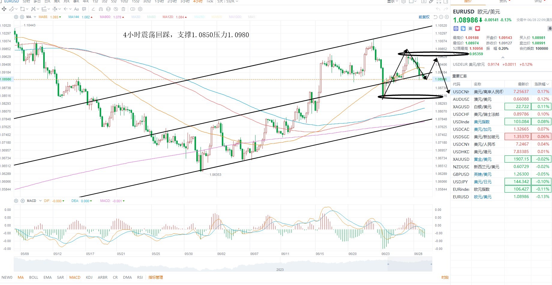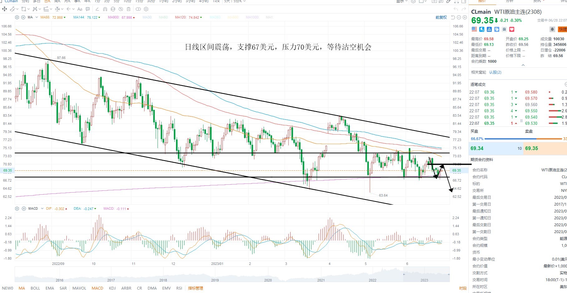 美元指数继续反弹,但依然在收敛区间之内,而美联储主席鲍威尔重申鹰派基调,所以支撑美元走强,结构上短期偏多为主,不排除美元向上突破的可能性,短期逢低吸纳,金价方面继续走低,目前尚未出现加速,且晚间有美国经济数据,关注PCE物价指数落地之后,金价是否加速破位,美原油方面维持区间震荡,短期没有跌破区间下沿,日内等待反弹之后的沽空机会