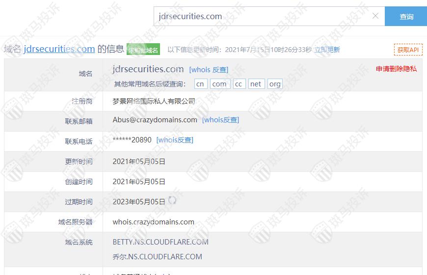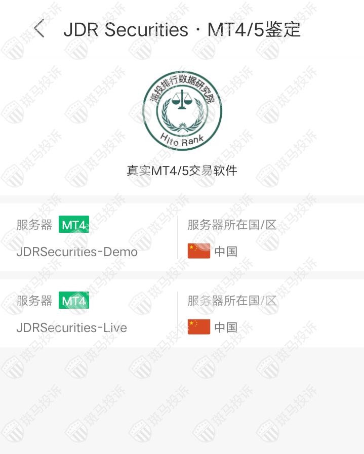 JDR Securities平台服务器有2台,均在中国。