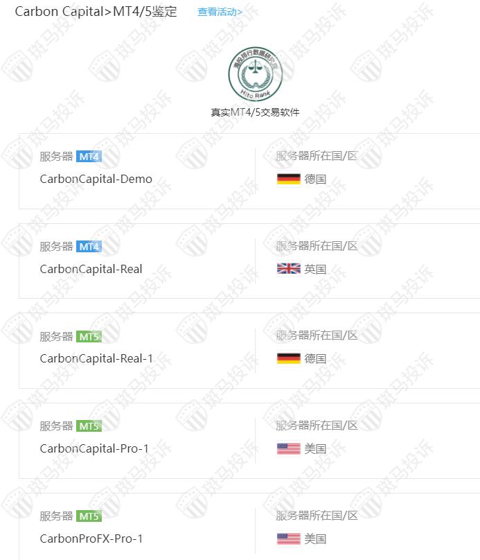 Carbon Capital平台服务器有5台,在英国和美国。