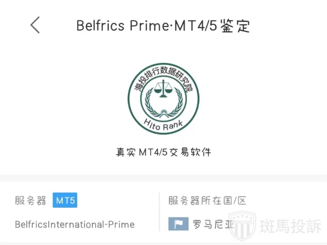 Belfrics Prime平台在斑马投诉暂未收到投诉信息。