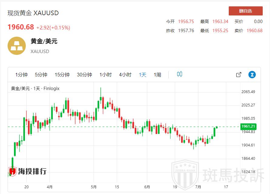EC Markets提醒:周四(7月13日)亚洲时段,现货黄金高位震荡,目前交投于1957.53美元/盎司附近,虽然本周美联储官员暗示美联储接近加息周期尾期,而且美国6月CPI数据也支撑该观点,美元指数和美债收益率本周大跌,一度帮金价创6月16日以来新高至1962.18附近,但该位置正好是55日均线和2079-1892跌势的38.2%双重强阻力位所在,而且市场仍普遍预计美联储将在7月份再加息一次,短线金价面临一定的回调风险。