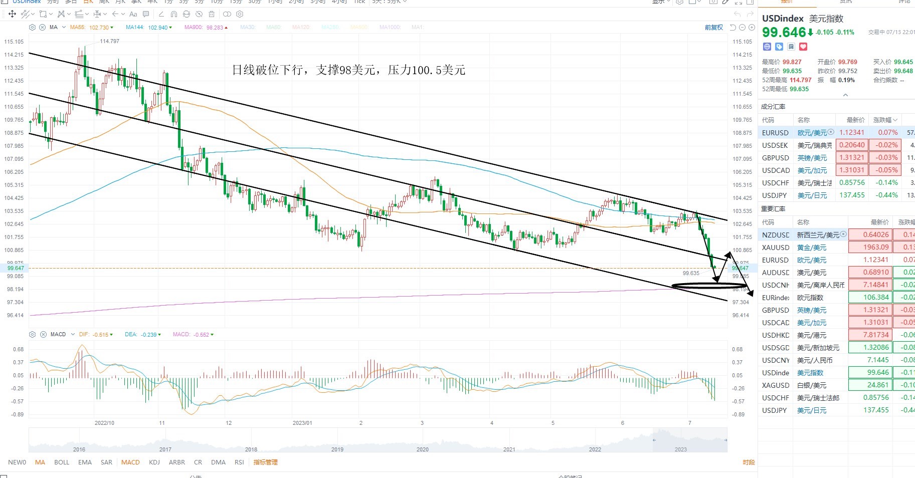 美元指数共振美债收益率下行,短期已经进入加速阶段,目前是美联储加息预期进一步放缓,施压了美元,对于通胀的下行依然是施压加息预期的重要因素,短期等待美元反抽之后的沽空机会,金价方面短期维持震荡上行,创一个月新高,但尚未出现加速,大概率是震荡上行的节奏,等待回踩低吸机会,日内不追涨,美原油继续走高,结构上属于多头加速,但依然没有反转,在加息预期下行阶段,需求预期进一步释放,支撑油价反弹