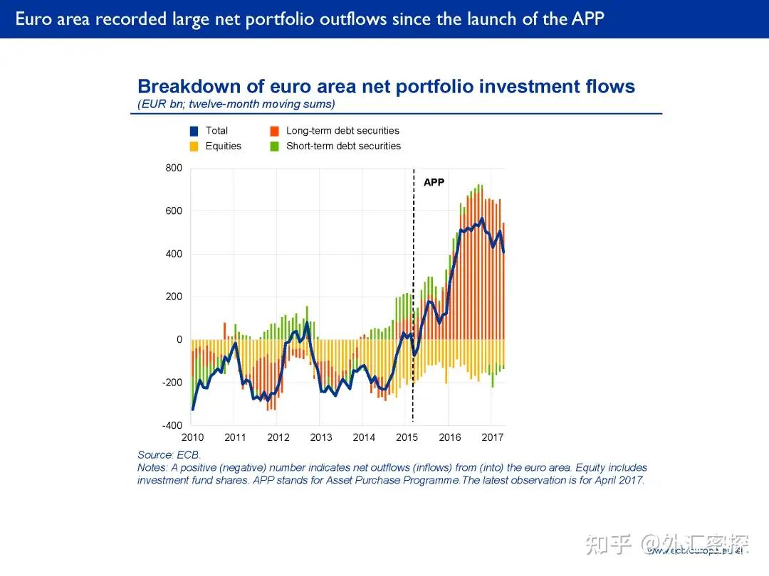 图:欧元区QE以后出现大规模的资本外流,而海外投资者则增配了欧元区的权益资产