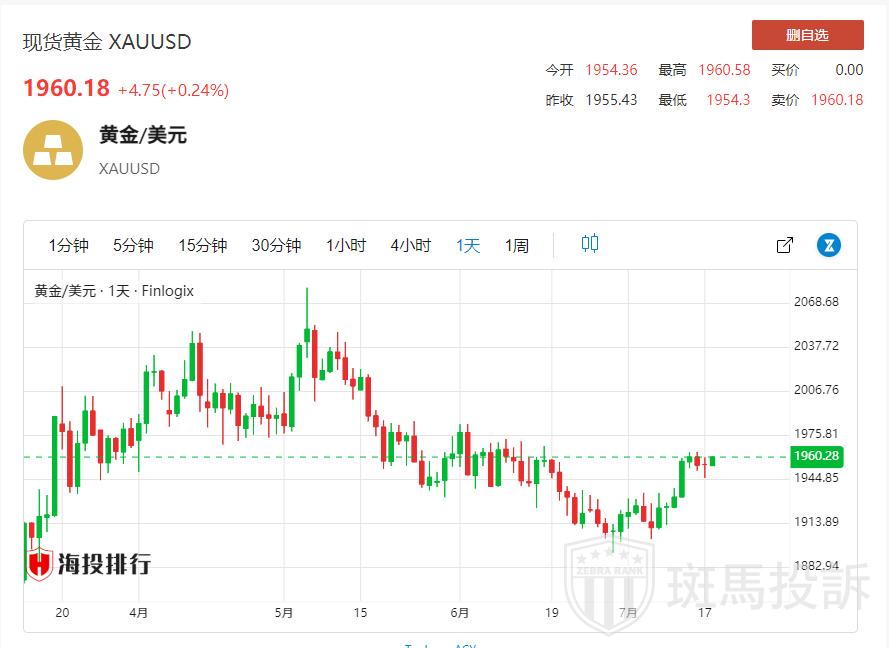 EC Markets报道:周二(7月18日)亚洲时段,现货黄金延续震荡走势,目前交投于1957.34美元/盎司附近,美国财长耶伦周一称美国不会陷入经济衰退,著名投行高盛下修美国经济未来12个月开始衰退的概率,鼓舞市场冒险意愿,美国标普500指数刷新近15个月高点,打压黄金的避险需求。
