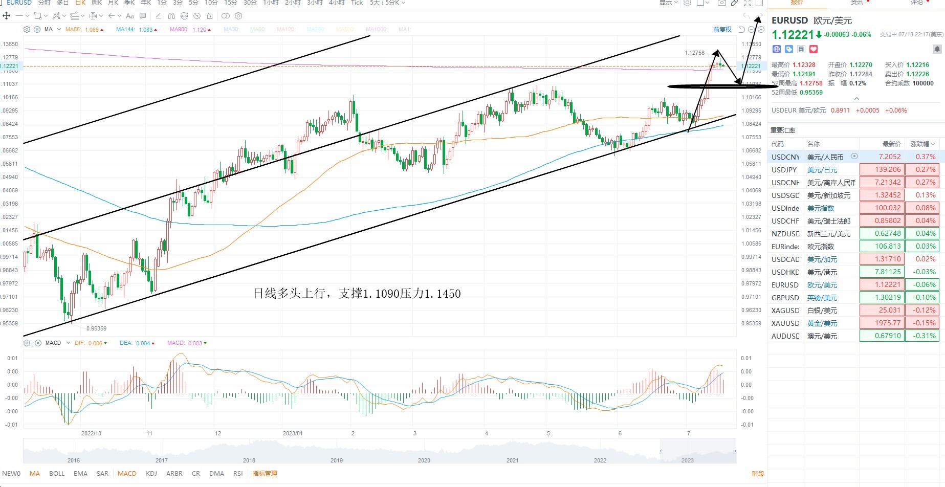 欧美短期继续反弹,但是力度有限,因美元指数超跌反弹,非美短期存在回踩的需求,大方向上,美元指数继续走弱的概率很大,等待压力测试之后的沽空机会,非美则等待回踩低吸机会,欧美日线级别支撑1.1090附近不破,反复低吸,上方压力1.1450附近,等待加速